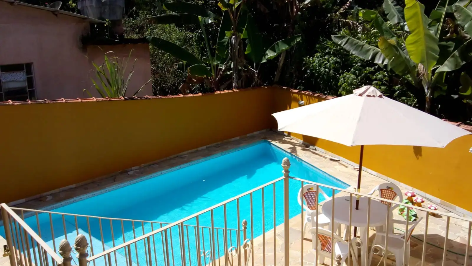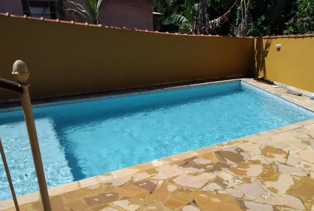 CASA É COMPOSTA POR GARAGEM DESCOBERTA PARA 02 VEÍCULOS, VARANDA COBERTA, SALA, QUARTO, BANHEIRO SOCIAL TODO EM PORCELANATO COM BOX EM BLINDEX, COZINHA, ÁREA DE LAZER COM FOGÃO A LENHA EM VARANDA COBERTA, PISCINA (40 MIL LITROS), SAUNA A GÁS, DUAS DUCHAS(QUENTE E FRIA) E UM BANHEIRO DE APOIO.