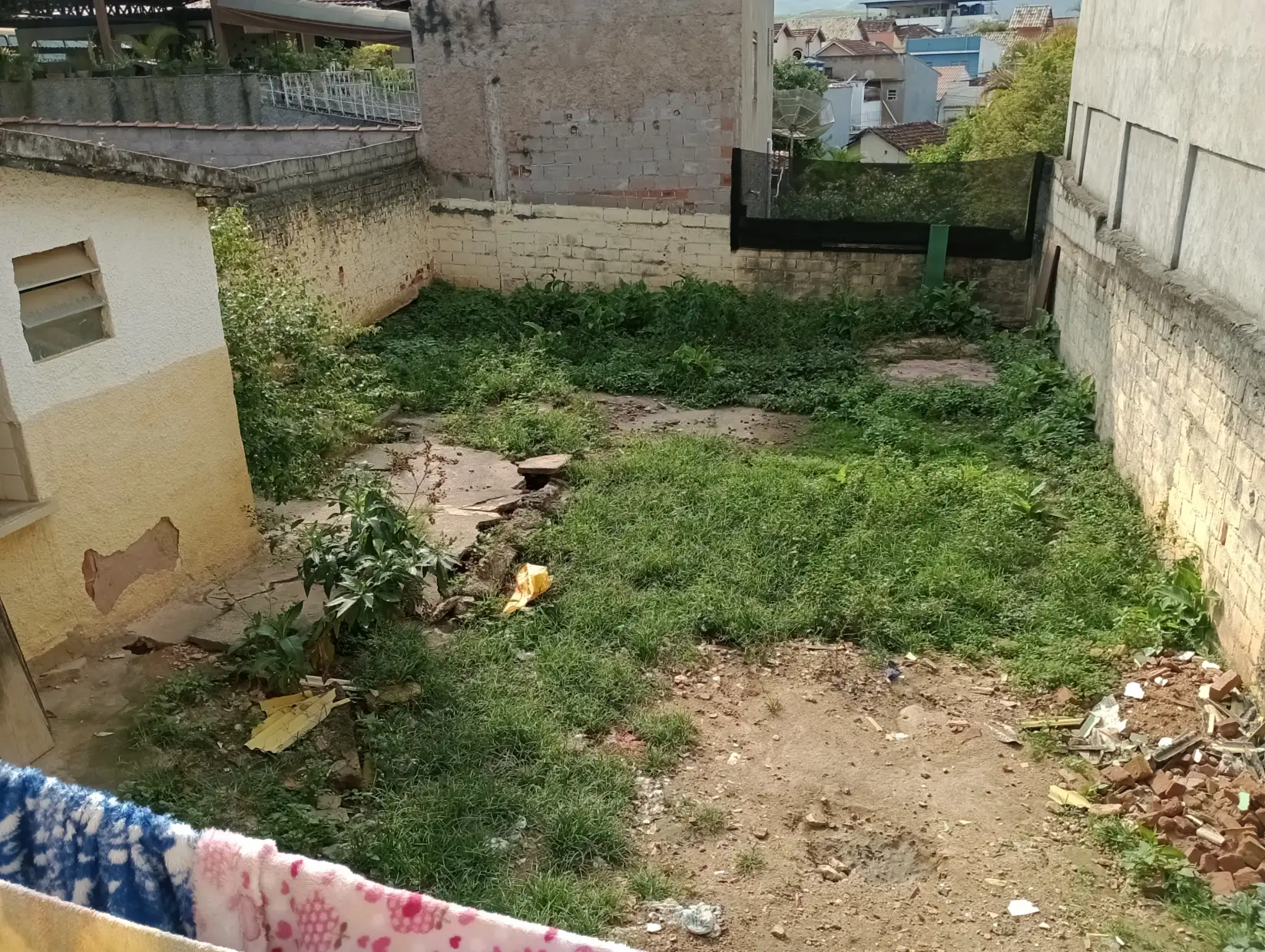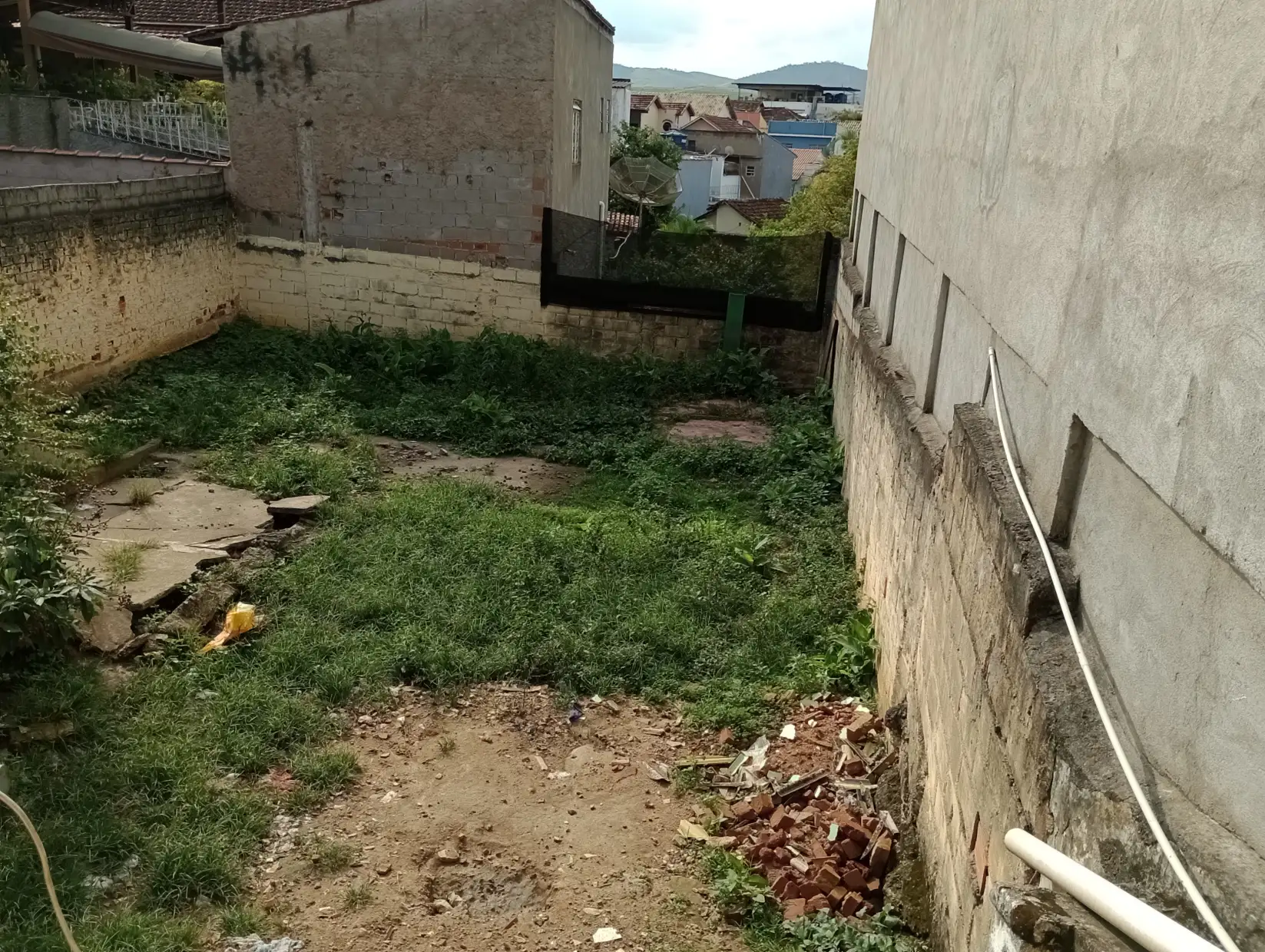 Terreno do imóvel medindo 8,00m de frente, 9,00m de fundos por 30,00m de casa lado.