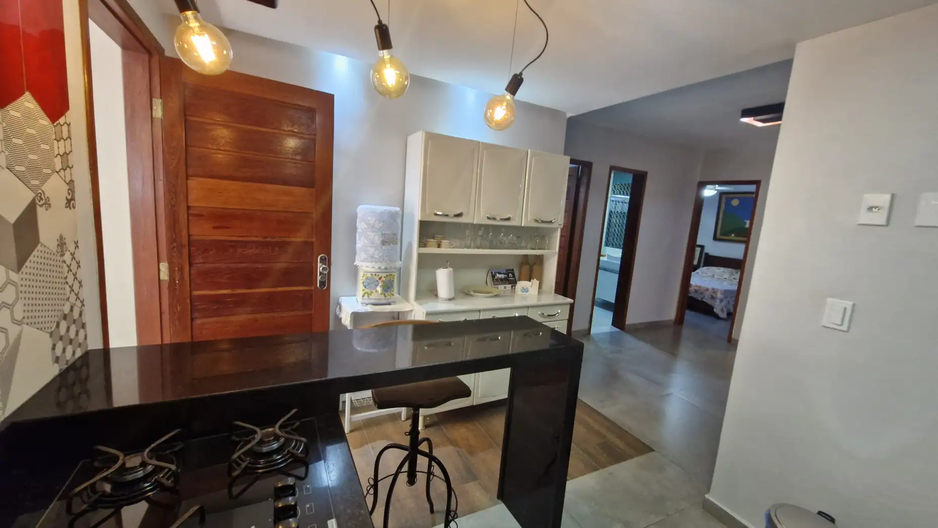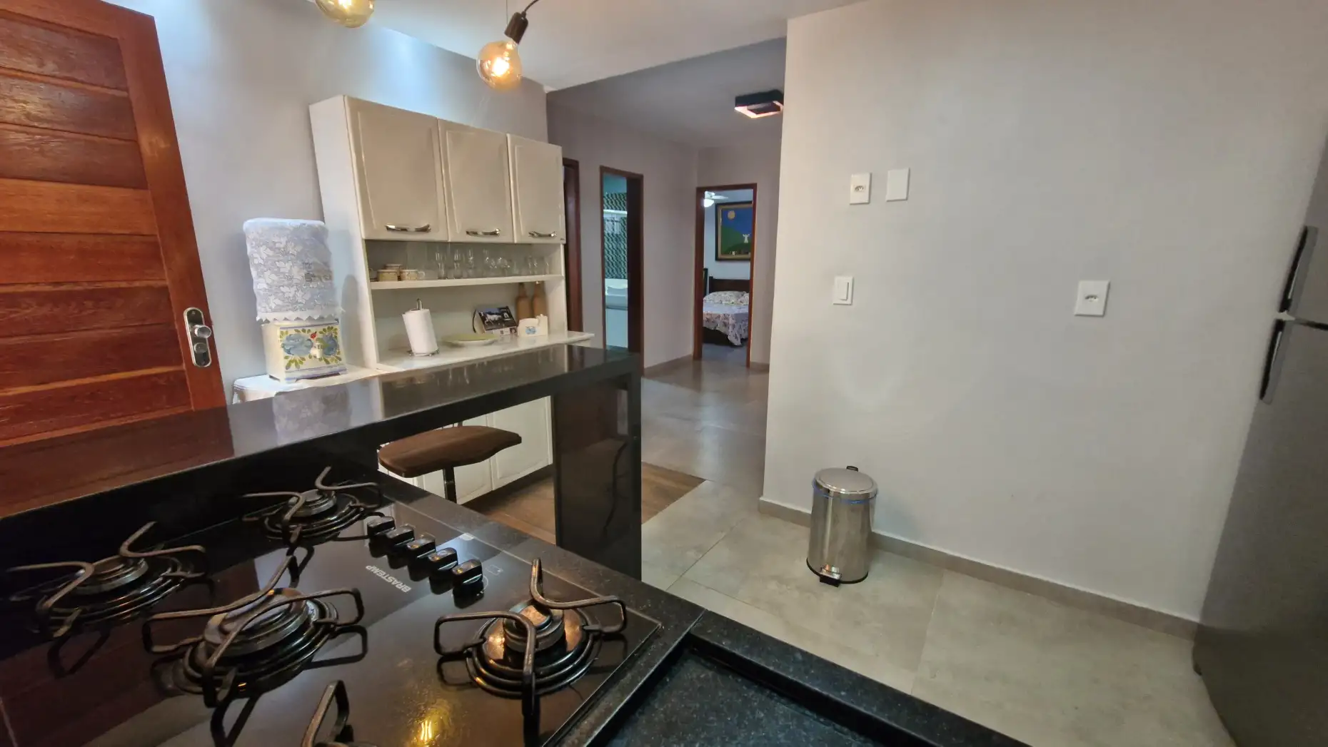 Cozinha funcional com balcão e pia em granito