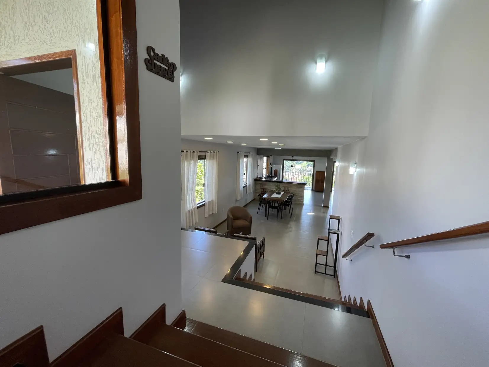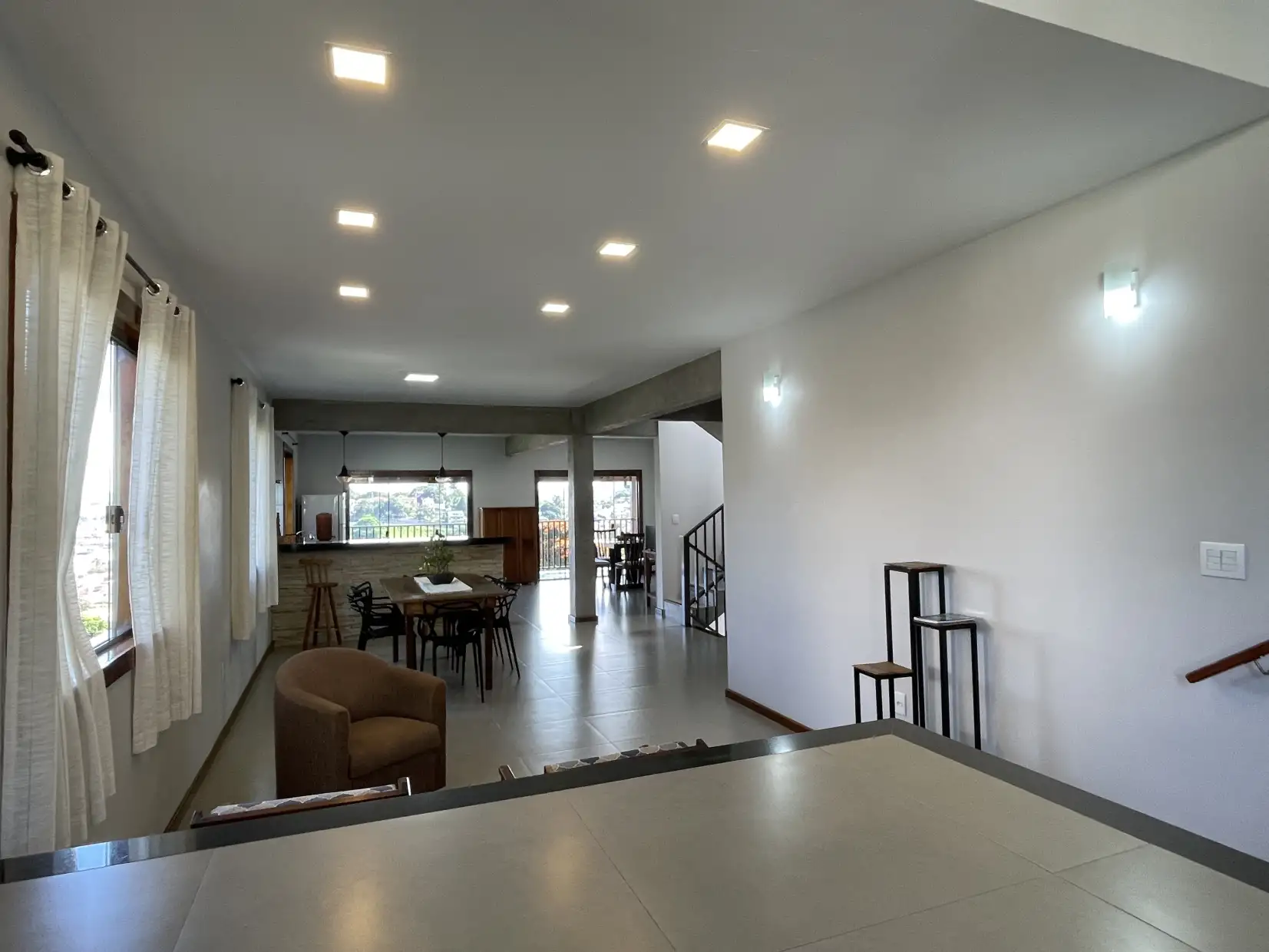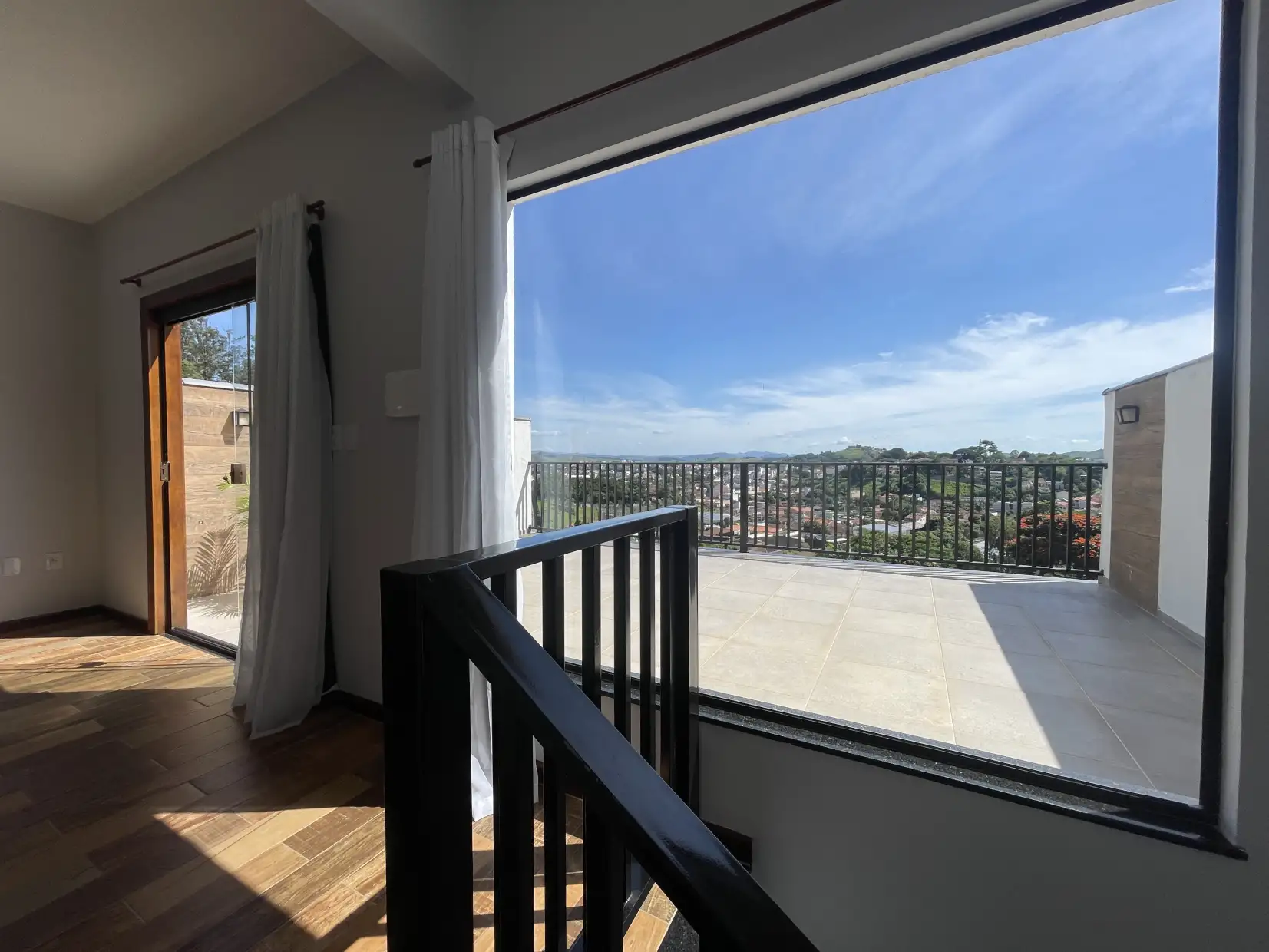 Pavimento superior: ampla sala com acesso direto a varanda descoberta com vista panorâmica, 02 quartos (sendo 01 suíte com closet) e lavabo.