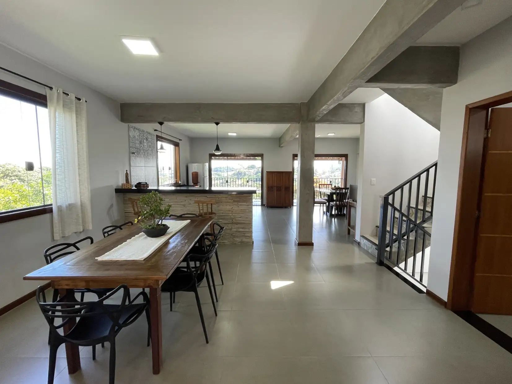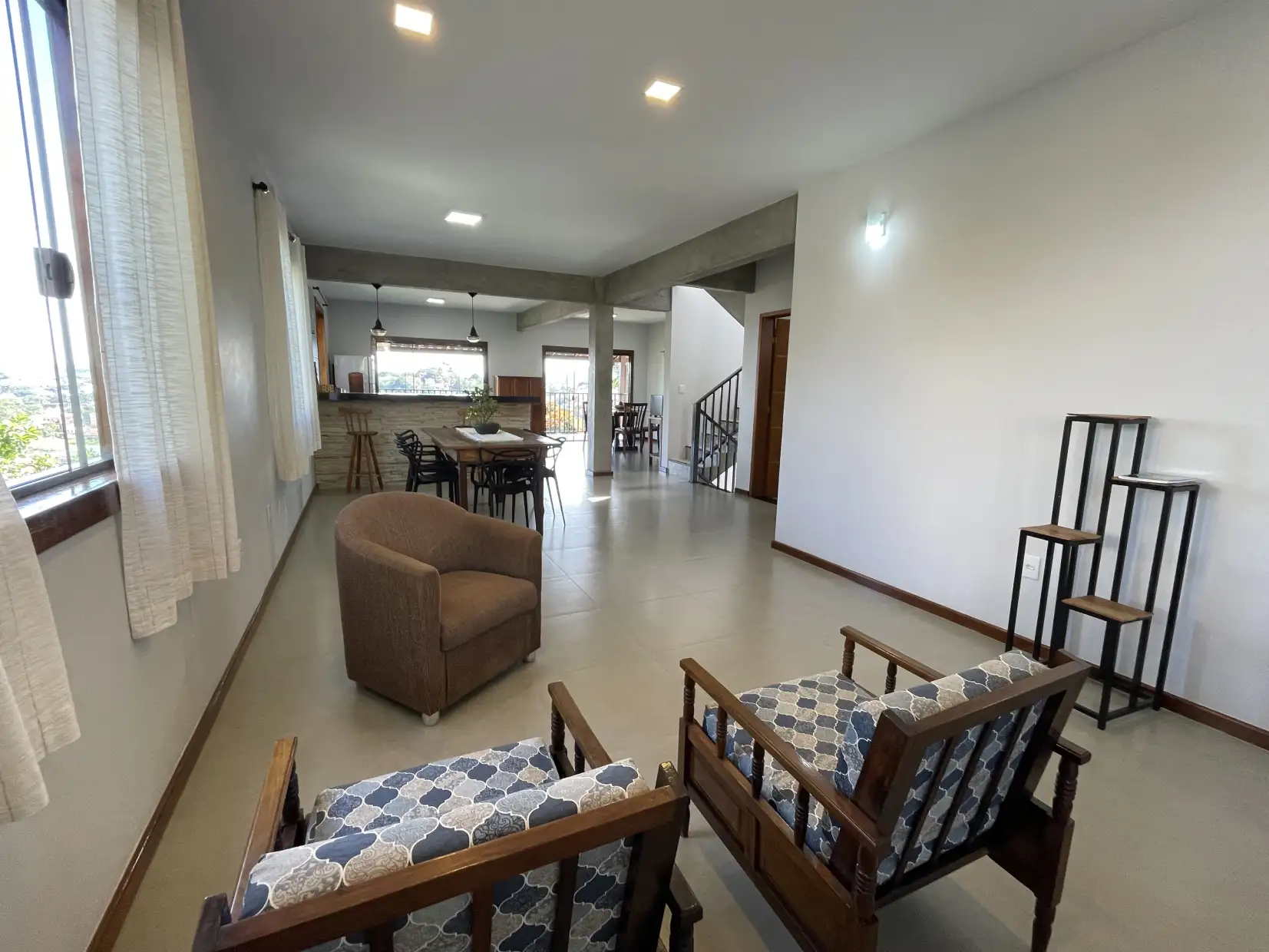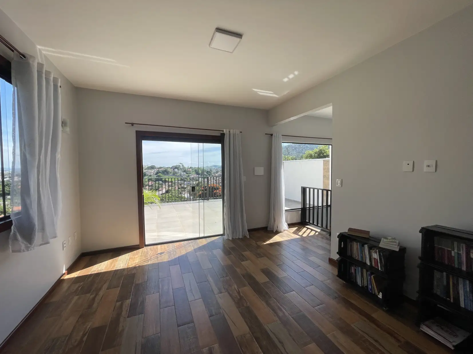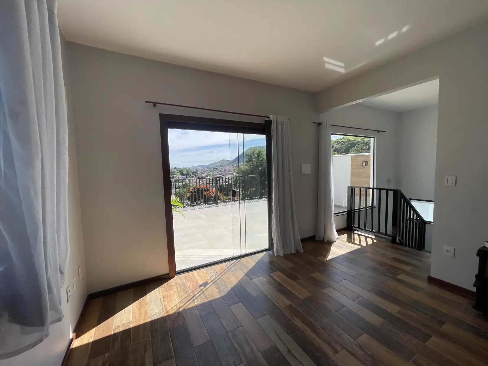 Pavimento superior: ampla sala com acesso direto a varanda descoberta com vista panorâmica, 02 quartos (sendo 01 suíte com closet) e lavabo.