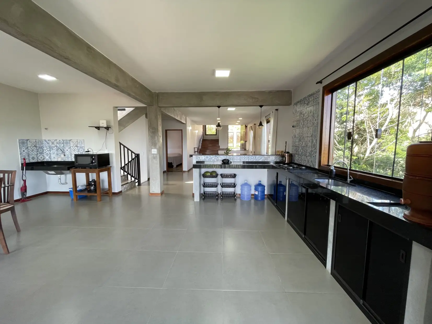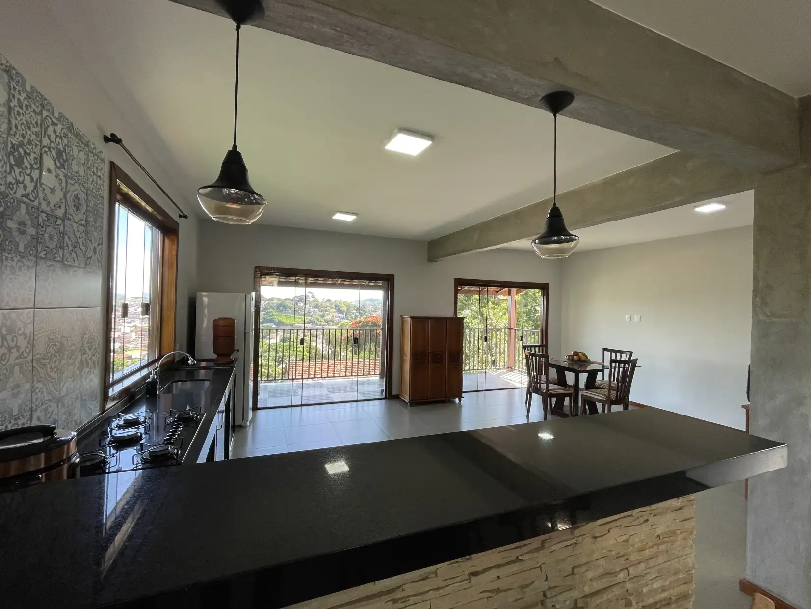 Térreo: sala ampla em 02 ambientes, copa e cozinha espaçosas, área de serviço, varanda com vista encantadora, 01 quarto e banheiro social.